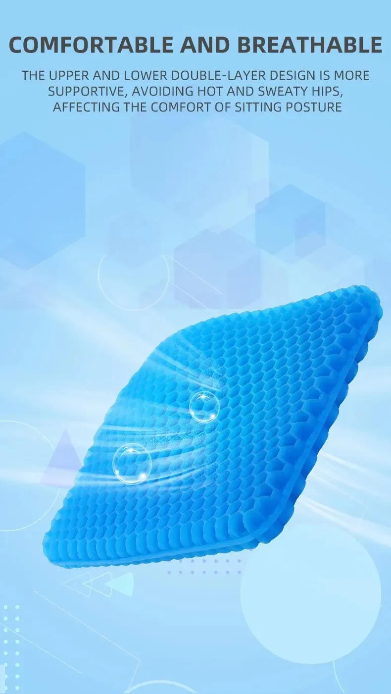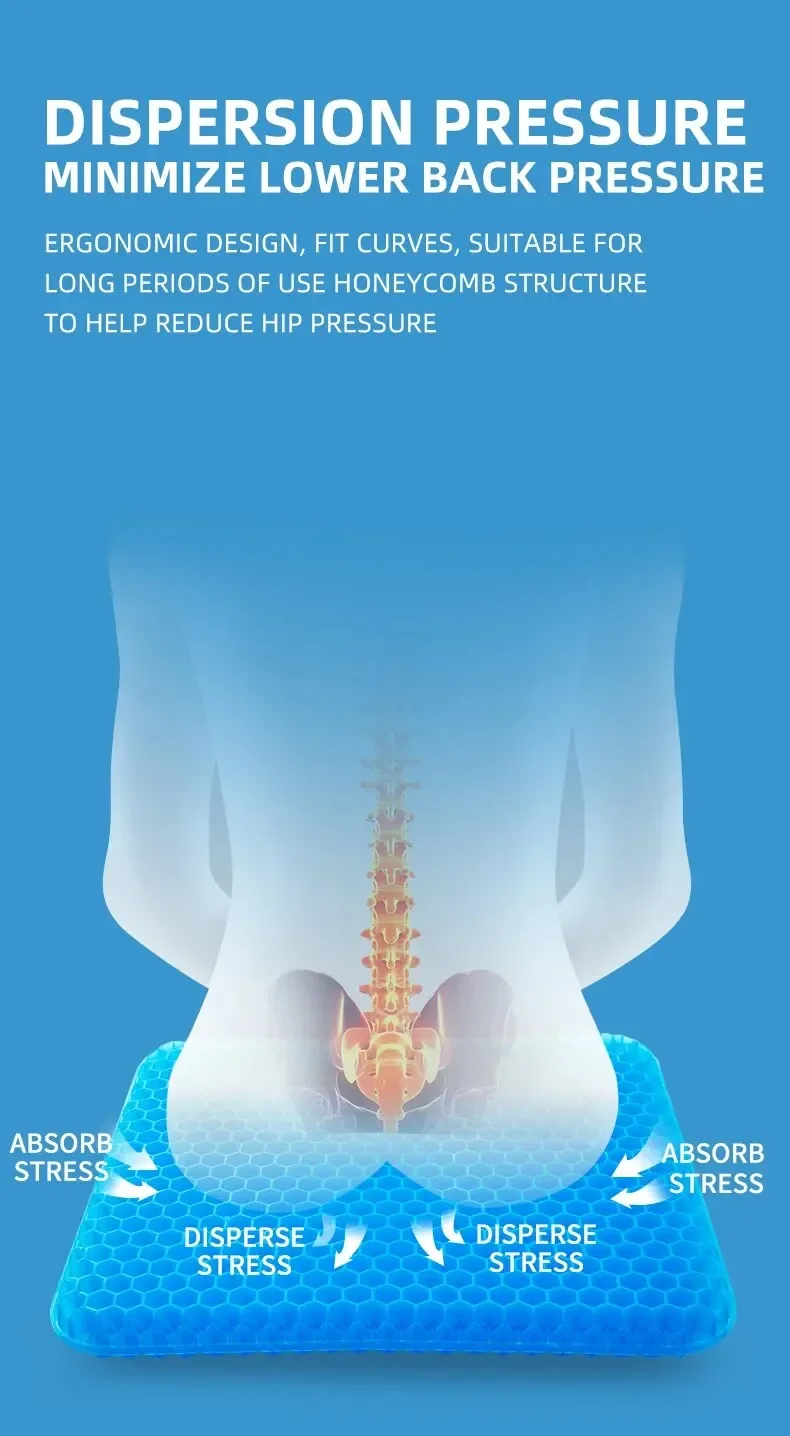 Enjoy superior comfort with this gel seat cushion designed to reduce pressure and support your body for longer sitting sessions. The breathable honeycomb structure promotes airflow to keep you cool, while the soft gel filling helps relieve tailbone, back and hip discomfort — ideal for home, office, car seats and wheelchairs.